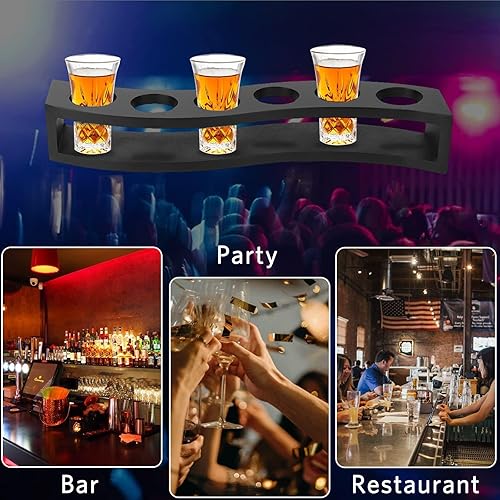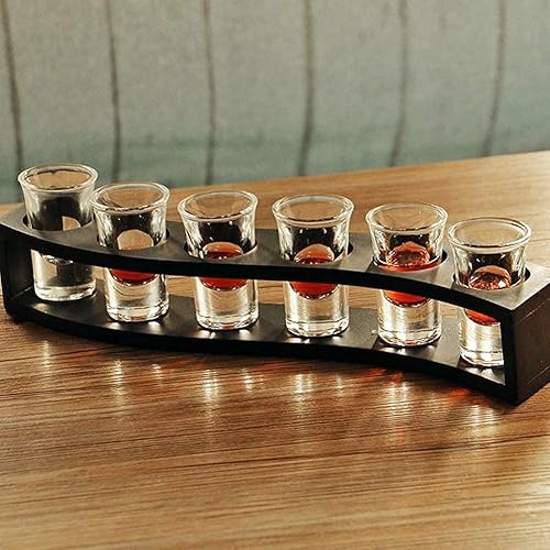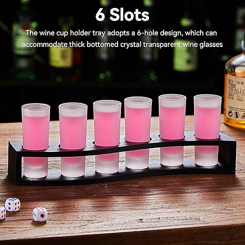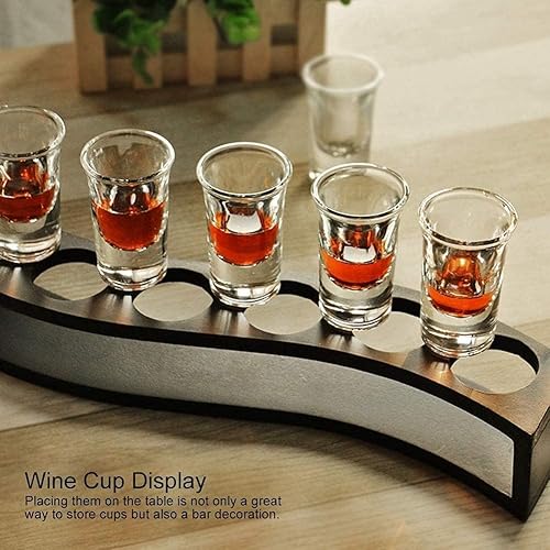 Planche à liqueur en bois à 6 trous,support à cocktail en verre à shot, Porte-verres à shot 6 trous,Planche à shots en forme de S Support de verres à Liqueur pour Bar à la maison Pub Party Restaurant