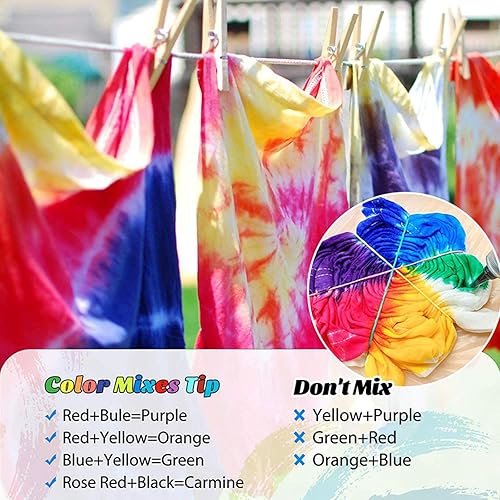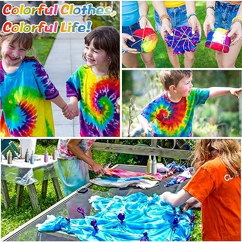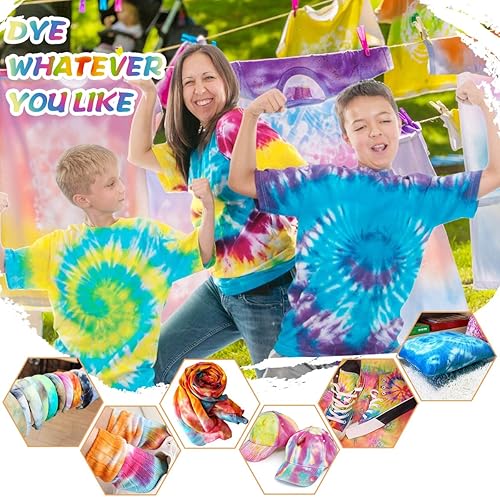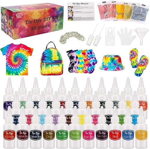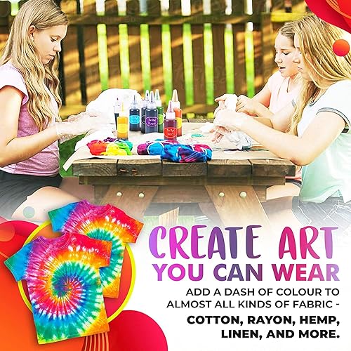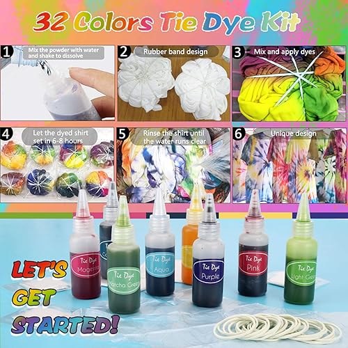 TopDirect Tie Dye Kit 32 Couleurs, Peinture Textile et Tissu Permanent Non Toxique DIY Graffiti Dye mit Poudres Tie Dye, Bouteilles à Pression, Élastiques et Gants pour Enfants Adultes