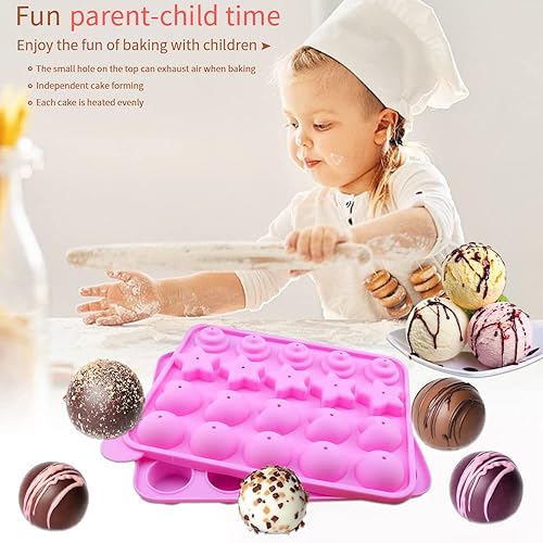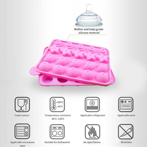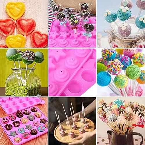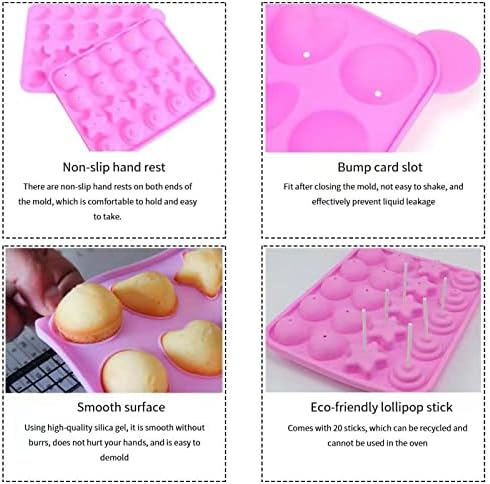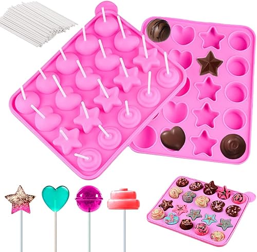 LUKIUP Moule à Pop Cake 4 en 1, 20 Moules à Lollipop Bonbon, Silicone Moules À Sucettes avec Rondes, Etoiles, Coeur, Spirale Moules pour la Fabrication de Chocolat de Glace de Bonbons de Cuisson