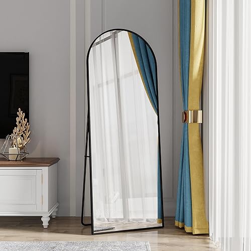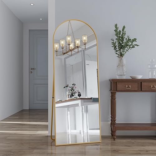 Miroir Pleine Longueur arqué 162 x 53 cm, Miroir sur Pied Miroir Pleine Longueur avec Cadre en Métal et Support Grand Miroir Mural pour Chambre à Coucher, Salon ou Dressing (B Doré, 162 x 53 cm)