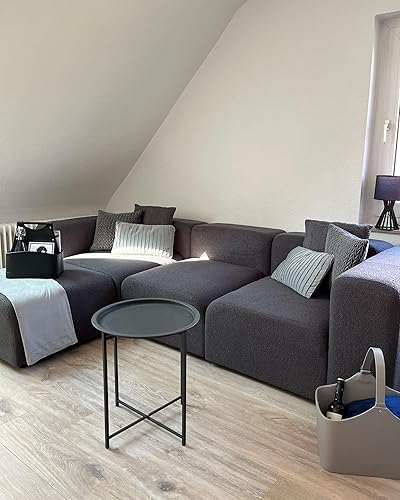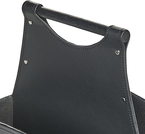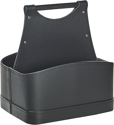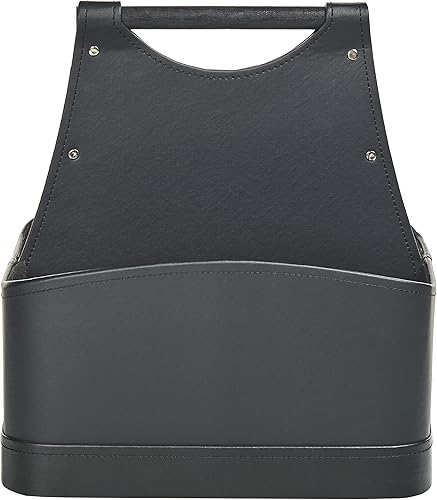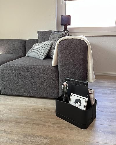 Panier de Rangement en Cuir PU avec Poignées Fait Main Porte-Revues Deux Compartiments Gris Graphite Uruk