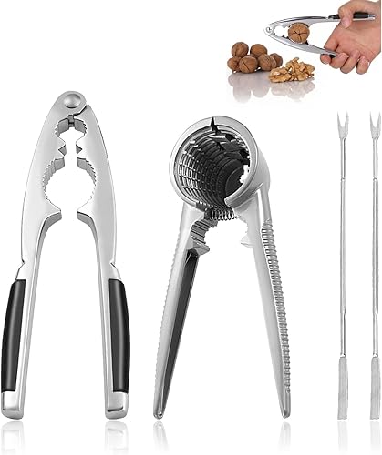 Half Forest 4 Pièces Casse Noix sans Effort Casse Noix Acier Inoxydable Multifonctionnel, Poignée Antidérapante, pour Les Noix, Noix, Noisettes, Amandes, Etc.
