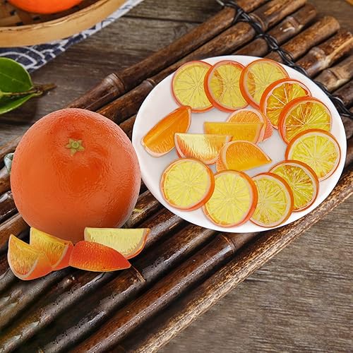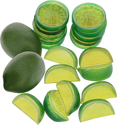 Woration Faux Citrons Citrons Verts & Tranches Blocs Ensemble, 20Pcs Artificiel Décoratifs Faux Assorti Fruits pour Accueil Bureau Mariage Table Fête Décoration Citron Thème