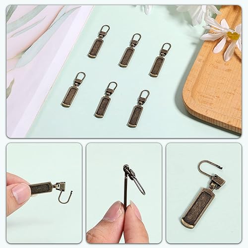 6pcs Tirette de Rechange, Métal Détachable Zipper Pull Replacement Tirette de Remplacement pour la Plupart des Articles-Sac à Main Veste Bottes Jeans Manteau Valise Bagages Robes (Bronze)