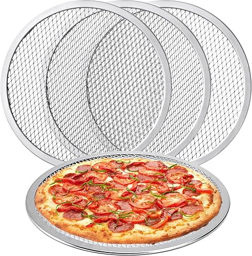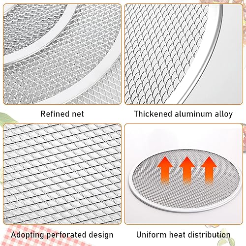 Vegena Lot de 4 plaques à pizza rondes antiadhésives en aluminium de 30,5 cm, plaque de cuisson en maille pour four, plaque de cuisson réutilisable avec trous pour une croûte croustillante, idéale