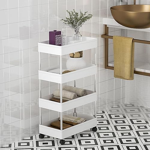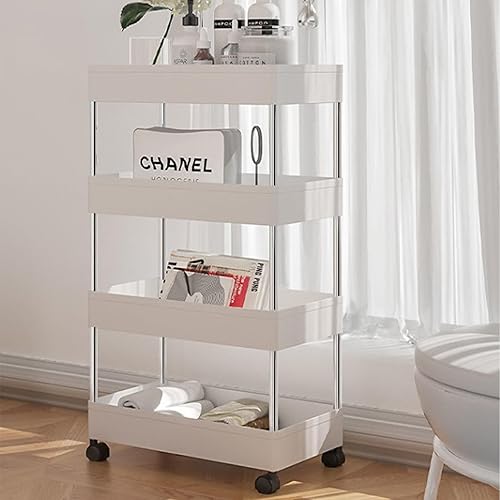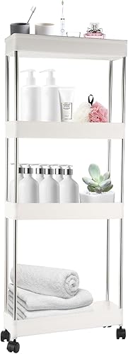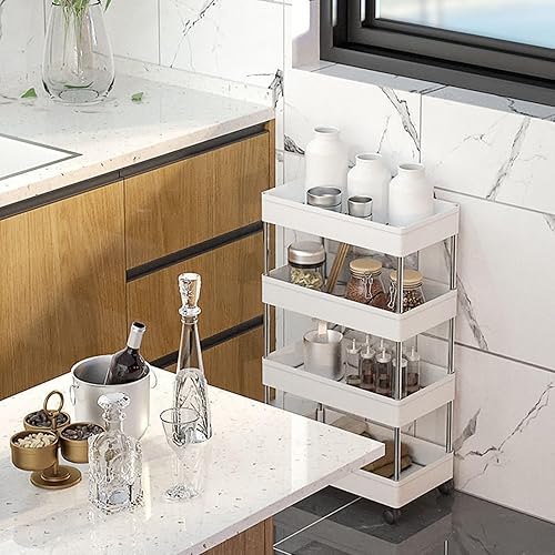 AKOLAFE Chariot de Cuisine Étroit Blanc - 38 x 12 x 97 cm - Étagère de Niche de 12 cm - 4 Niveaux de Rangement - Petite Étagère de Cuisine / Salle de Bain