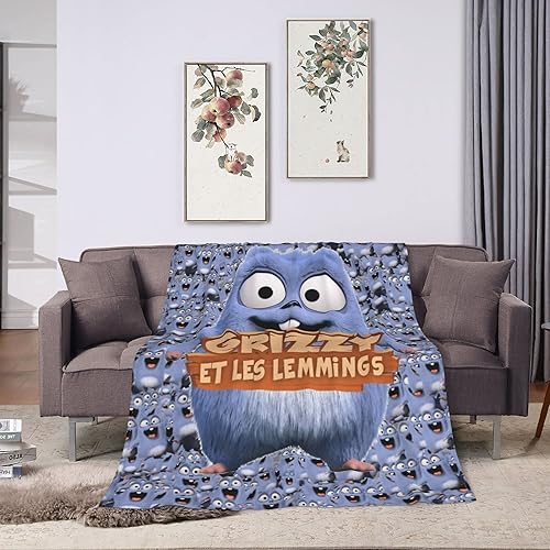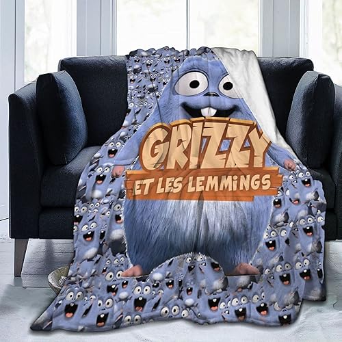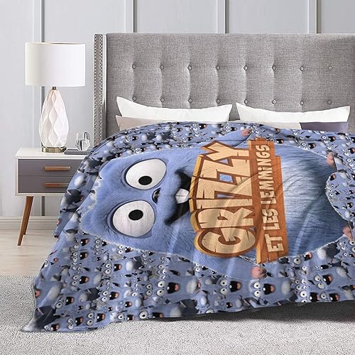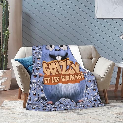 Couverture pour Grizzy et Les Lemmings Couverture Polaire Douce et légère en Flanelle avec Motif imprimé Dessin animé pour canapé-lit Voyage Toutes Saisons Couverture décorative pour bébé Enfants GA