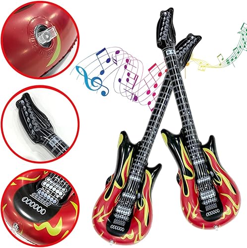 Lot de 5 guitares gonflables, accessoires de guitare, gonflables, 100 cm, instrument de musique rock pour fêtes à thème, carnaval, fête d'anniversaire