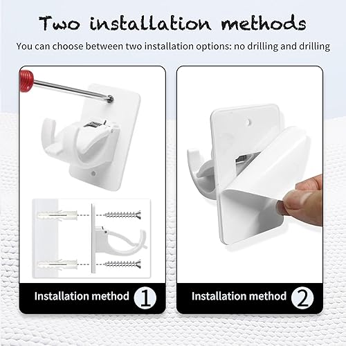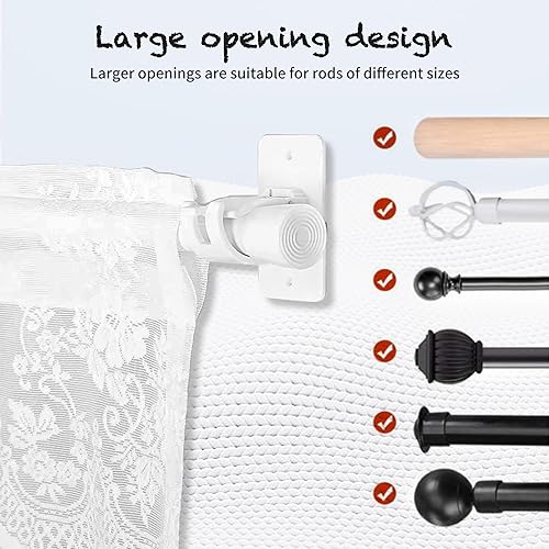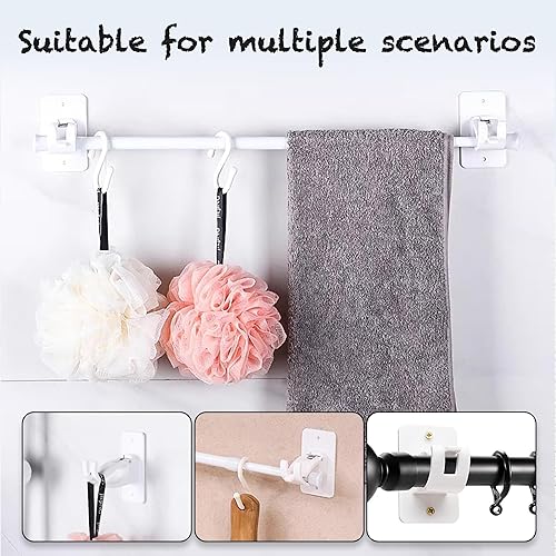 2 pièces Support de tringle à rideau réglable, Sans Percage Support Crochets, Support Tringle Rideaux, Montage auto - adhésif ou à vis. Idéal pour salon, chambre à coucher, salle de bains(Blanc).