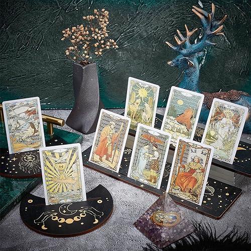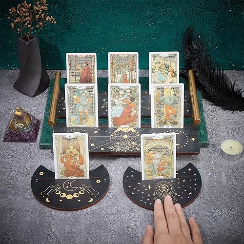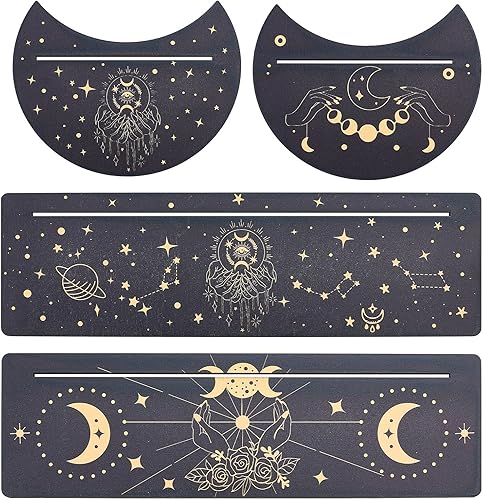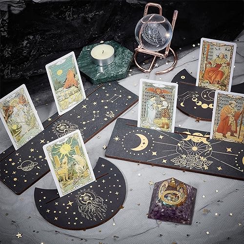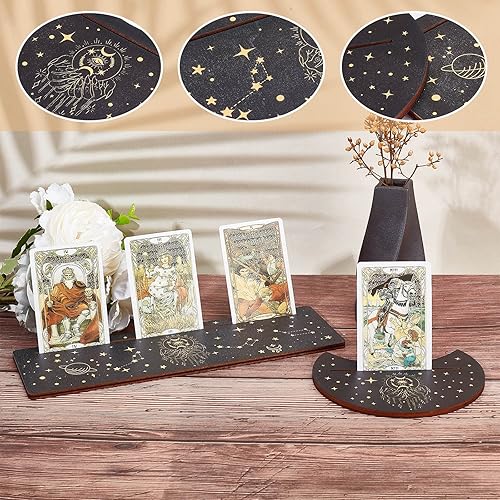 GORGECRAFT 4 pièce Support de Carte de Tarot en Bois Lune et Main de L'Espoir Carte de Tarot Support D'Autel Noir Support D'Affichage de Carte de Tarot Rectangulaire en Forme de Lune pour Fournitures