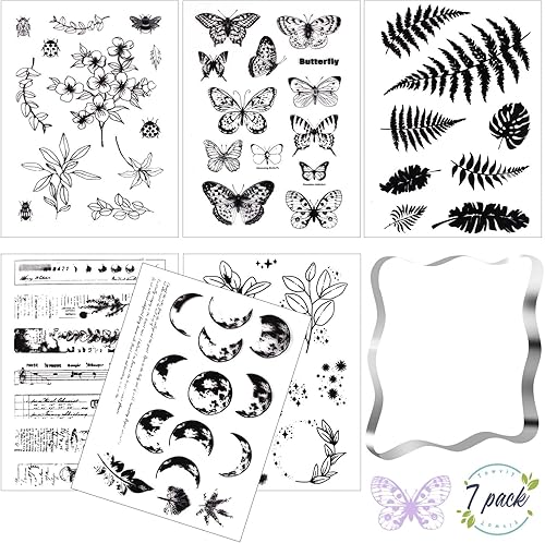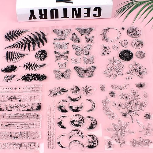 Towviy 7 Pièces Bloc de Tampon Transparent et Tampon Transparent Scrapbooking, Tampon Silicone Transparent pour Album Photo de Scrapbooking de Tampon en Silicone