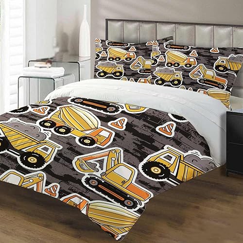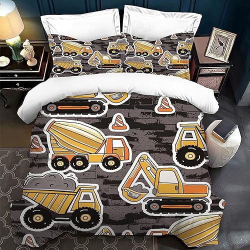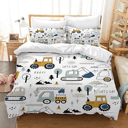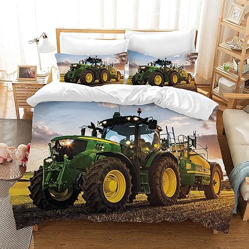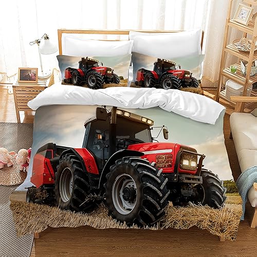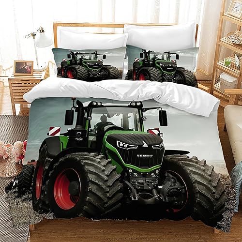 LLTTEER Housse de Couette Tracteur 140x200cm 3 Pièces,Parure De Lit Tracteur 1 Personne avec 2 Taies d'oreiller 65x65cm,Housse De Couette Microfibre pour Adolescents (Tractor 02,140x200cm)
