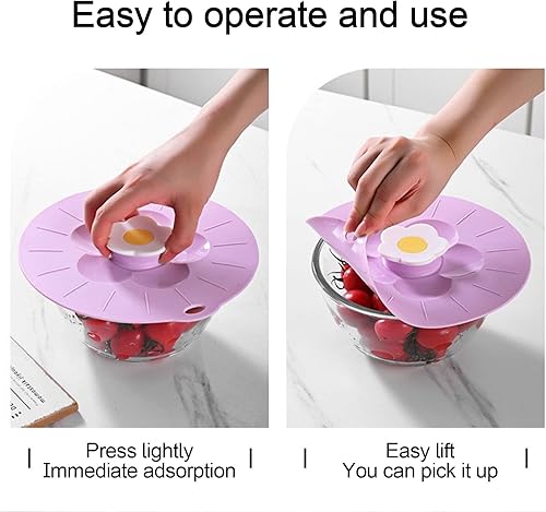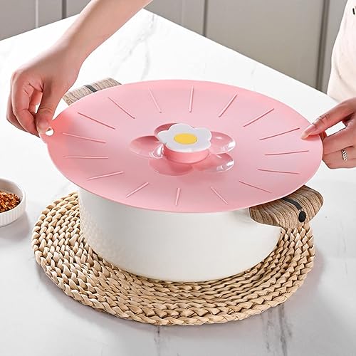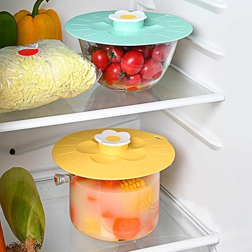 Couvercle en Silicone Fleurs pour le Stockage et la Cuisson des Aliments, Couvercles en Silicone pour Bols et Couvercles Alimentaires, Couvercle Frais en Silicone pour Joint Hermétique sur(Jaune L)