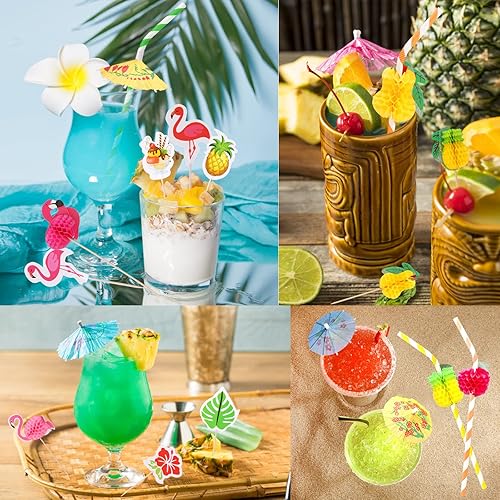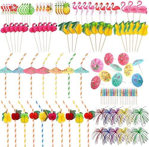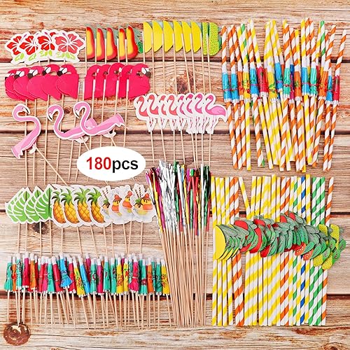 DPKOW Lot de 180 décorations de Cocktail, bâtons de Boisson Parapluie, Feux d'artifice Scintillants, étiquette de Fruits Cocktail pour Boissons, décorations de fête d'été, Accessoires de Cocktail