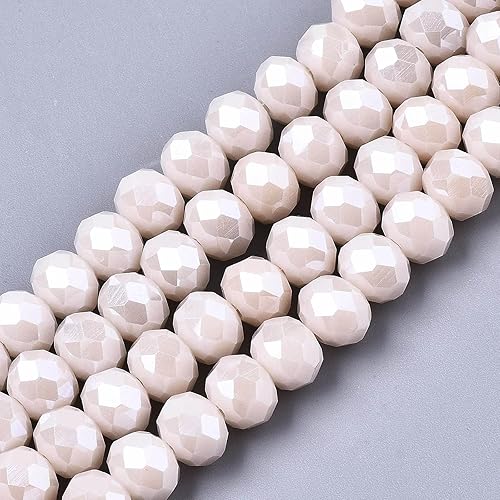 PandaHall Briolette Lot de 870 perles rondes à facettes en verre opaque plaqué brillant de 6 mm pour fabrication de bracelets, colliers, boucles d'oreilles, bijoux, rose brumeux