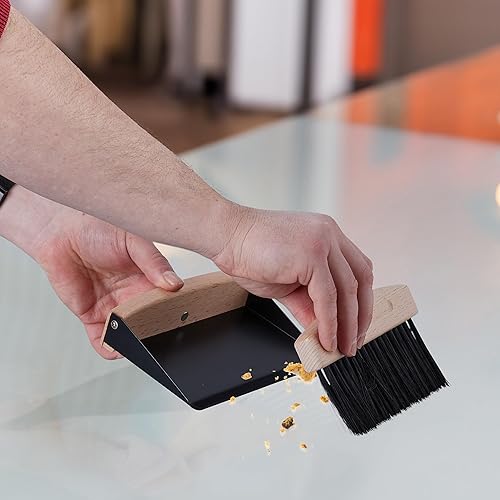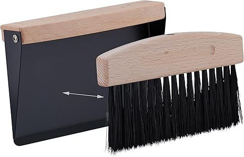Relaxdays Lot Balai de Table, balayette et Mini Pelle, pour Cuisine & Camping, magnétique, métal/Bois, Noir - Nature