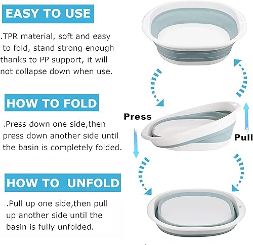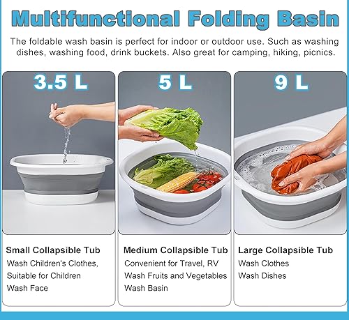 KANGSIT Bassine à vaisselle pliable de 5 L, panier de lavage portable en plastique de silicone, multi-usage, pour l'extérieur, le voyage, le camping, l'évier pliable pour économiser de l'espace
