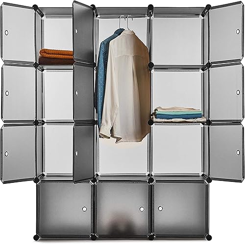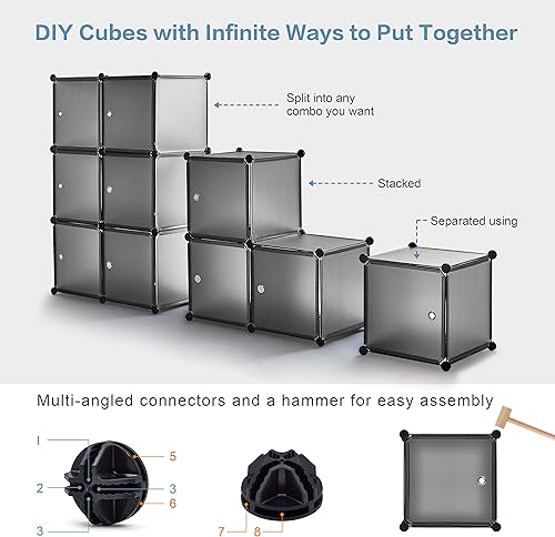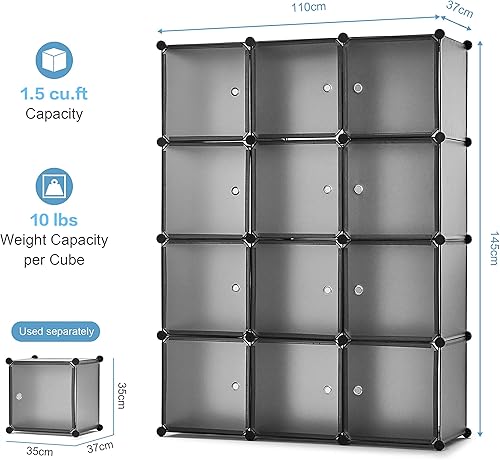Mondeer Armoire Penderie Portable, Étagère de Rangement, Cubes de Stockage Modulaire en Plastique en métal Stable, Jouets (Translucent Gris, 12 Cubes)