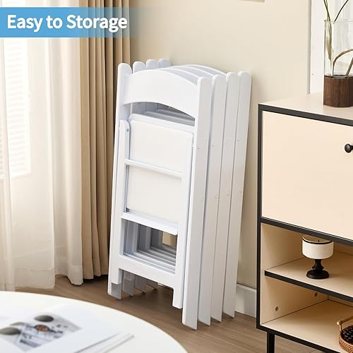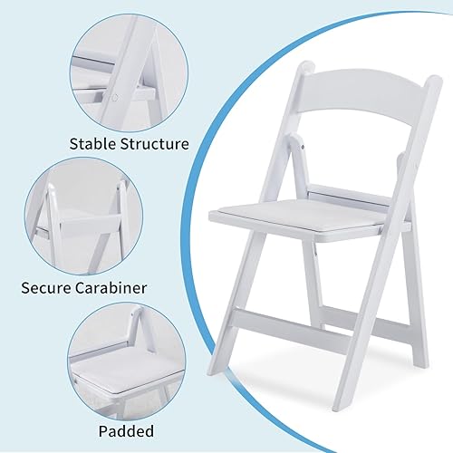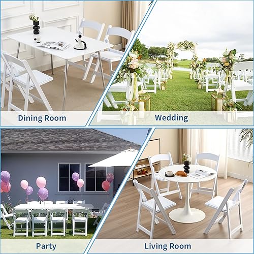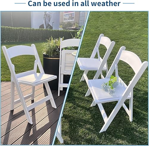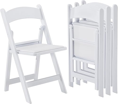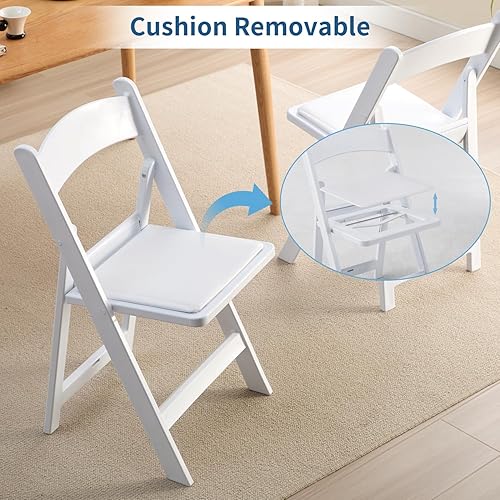 KAIHAOWIN Lot de 4 chaises pliantes en résine avec siège rembourré en vinyle pour intérieur et extérieur pour événements, fête, mariage - Blanc