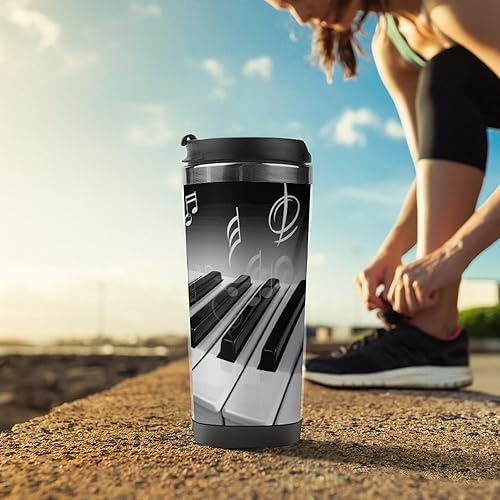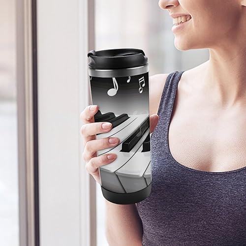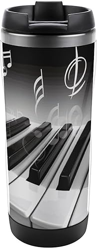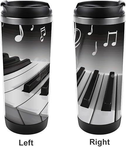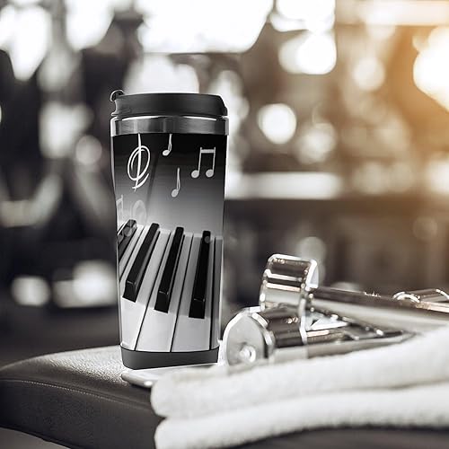 GHENBLT Tasse à café de voyage avec symbole de musique de piano de 355 ml - Tasse à café de voyage en acier inoxydable - Bouteille d'eau isotherme - Tasse de voyage