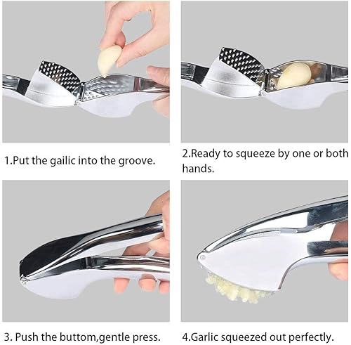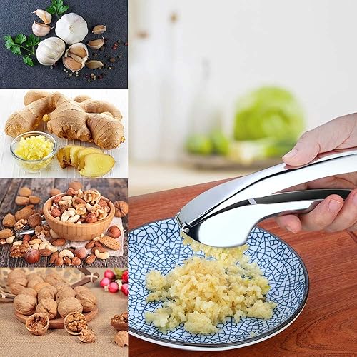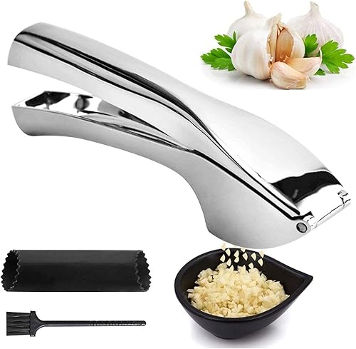 RANJIMA Ail Coupeur, Presse Ail Inox Professionnel Ecrase Ail Acier Inoxydable Presse Ail Avec Poignée Facile à Presse, Broyeur D'ail Extraire plus de Pâte D'ail, Accessoires de Cuisine pour La Maison