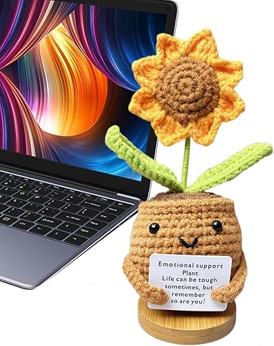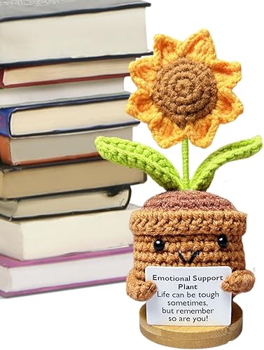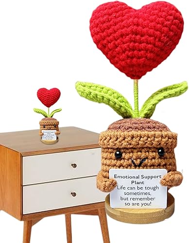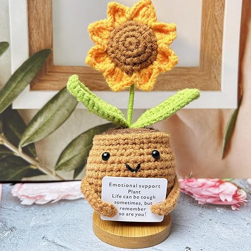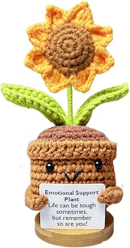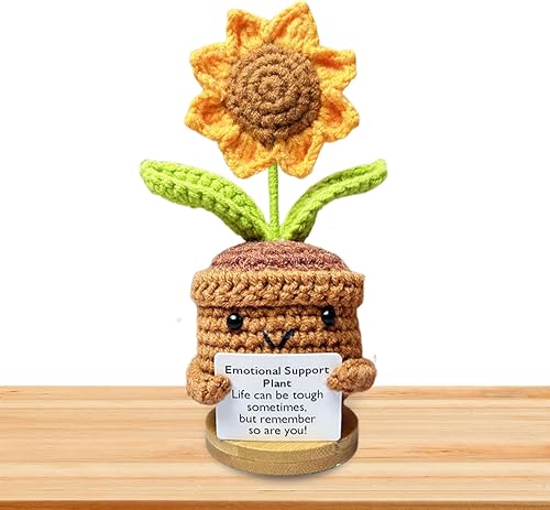 Plante de soutien émotionnel, cadeau de plante de soutien émotionnel fait à la main, ornements de plantes en pot crochetées à la main, poupée en crochet de fleur, décorations de bureau tricotées en