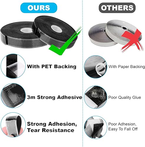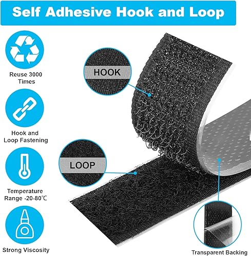 Scratch Autocollant Double Face 10M x 20mm, Scratch a Coudre Autocollant Double Face Noir, Bande Scratch Adhésive Puissant Hook Loop Rubans pour Ménage, Bricolage Et l'artisanat, Shearable