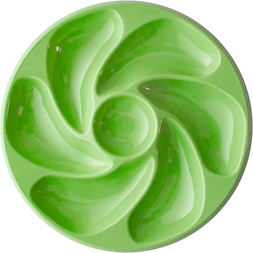 JORISELECTION Assiettes A Huitres VERT FLUO 6 Compartiments +1 Pour Le Citron, Sauce. Fabrication Française Diamètre 20 Cm couleur VERT