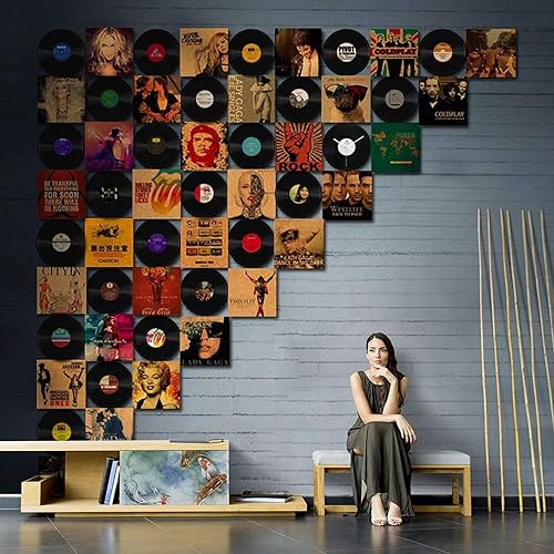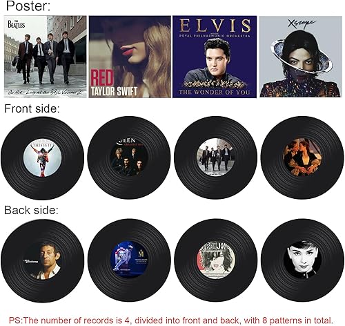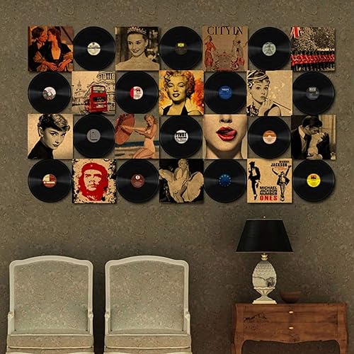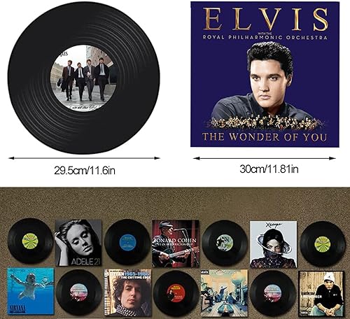 Qkydky Décoration de Disque Vinyle, 4 Pièces Disque de Décorations de Fête de Musique en Rouleau, 4 Pièces Affiche Colorée, Décoration Murale de Disque Vinyle, The Beatles