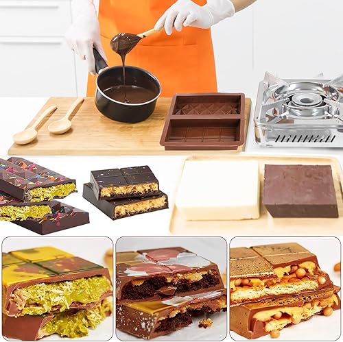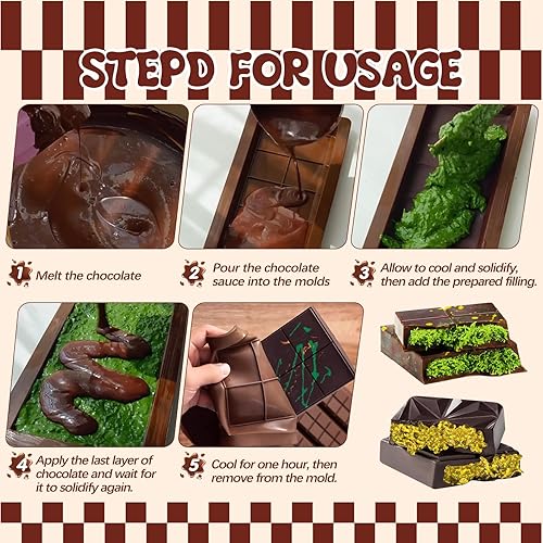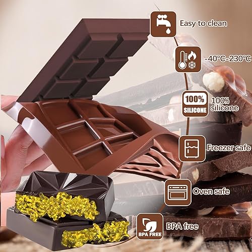 2 Pièces Moule Tablette Chocolat Dubai, Moule à Chocolat en Silicone, 2-en-1 moule Silicone Chocolat Profond Antiadhésif