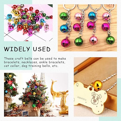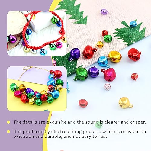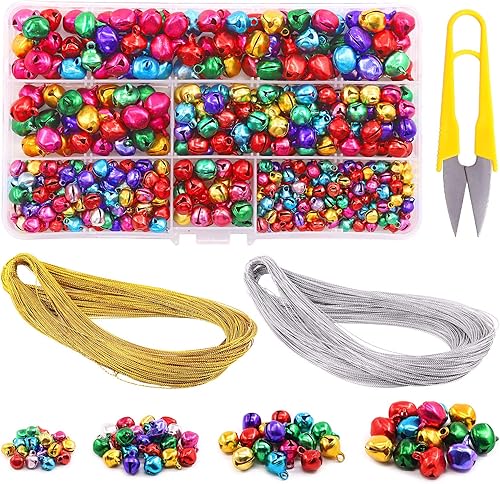Swpeet Assortiment de 403 clochettes de Noël colorées de 4 tailles avec cordon doré et argenté de 200 m, clochettes et clochettes artisanales pour décorations de fête de Noë