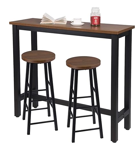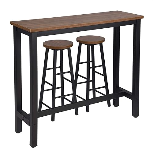 WOLTU 1 X Table de Bar + 2 X tabourets de Bar en MDF et métal,Ensemble de Meuble Industriel de Salle à Manger 120x40x100cm Hêtre Foncé