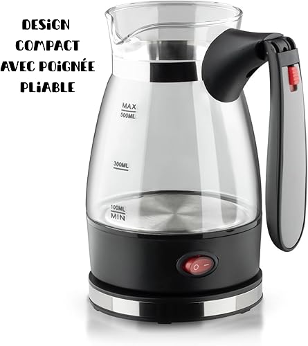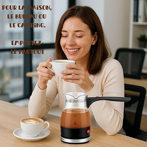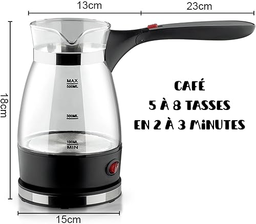 Cafetière Électrique 600W 500ml - Cafetiere Turque Grecque Moka Italienne, Machine à Café Oriental en Verre et Acier Inox, Protection Antisurchauffe, Maison Bureau Camping. Cadeau parfait