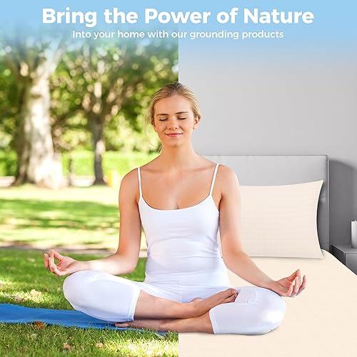 VigorVortex Drap plat de mise à la terre avec 90 % coton et 10 % fibre d'argent conductrice pour améliorer le sommeil avec cordon de mise à la terre de 4,6 m, 99 x 203 cm, beige
