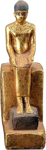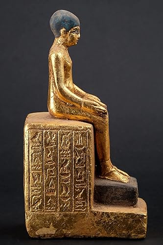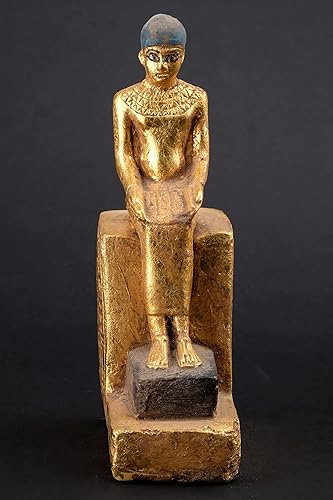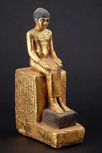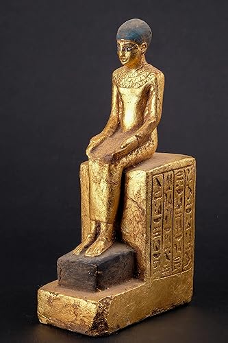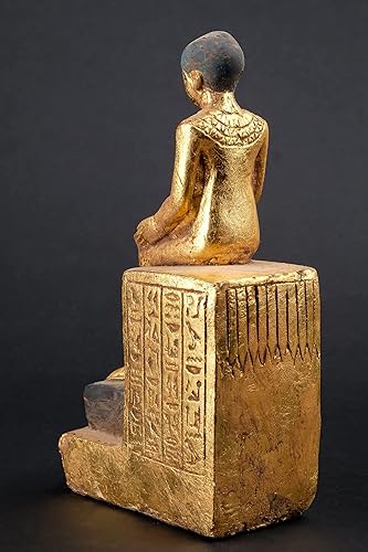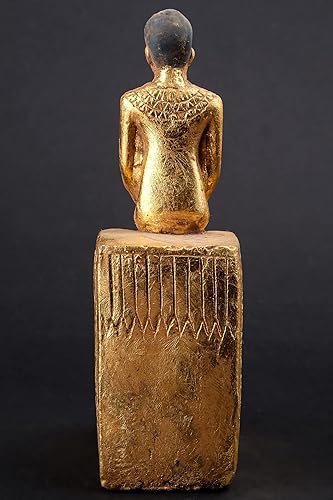 Statue d'art égyptien assise statue d'Imhotep tenant un rouleau de papyrus ouvert en pierre lourde feuille d'or peinte à la main fabriquée en Égypte.