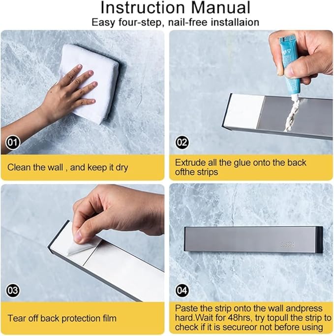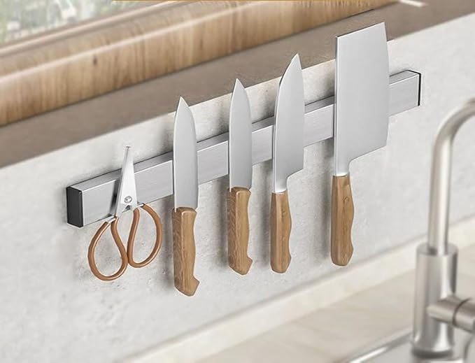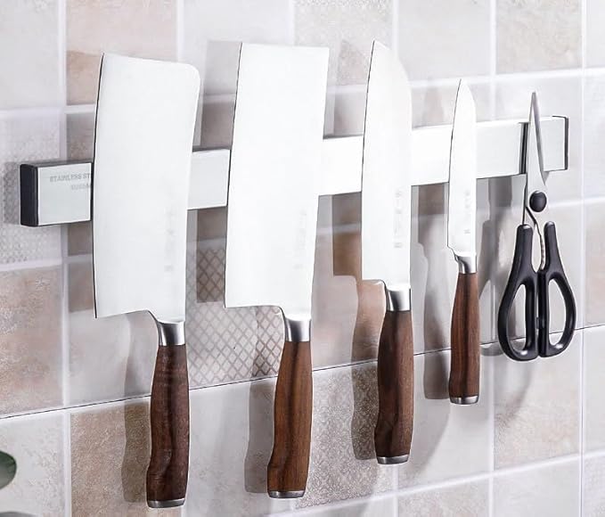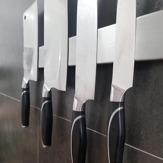 PIQIUQIU Bande magnétique autocollante pour couteau de 30 cm - SUS304 - Porte-couteau magnétique pour mur - Bande magnétique sans perçage - Argenté, 30CMCXDJ