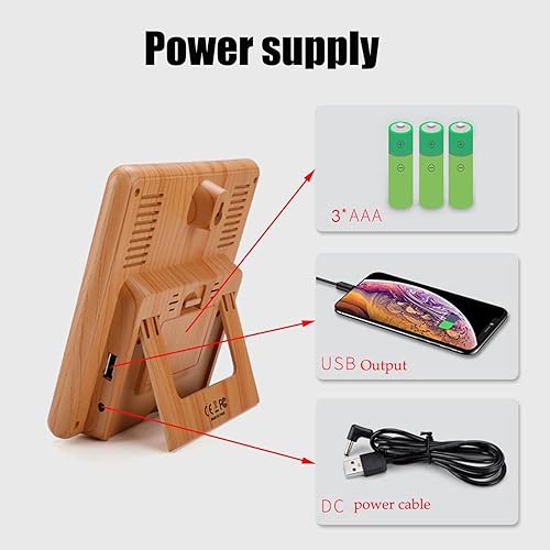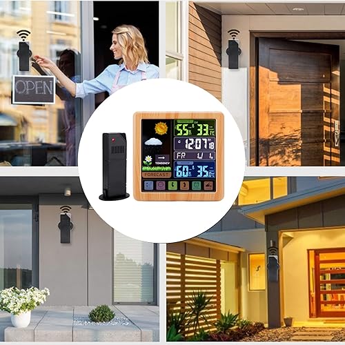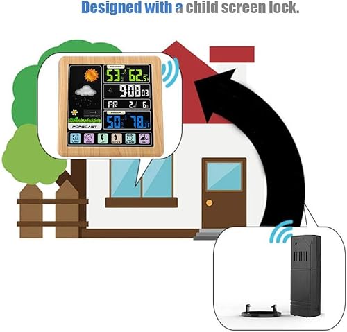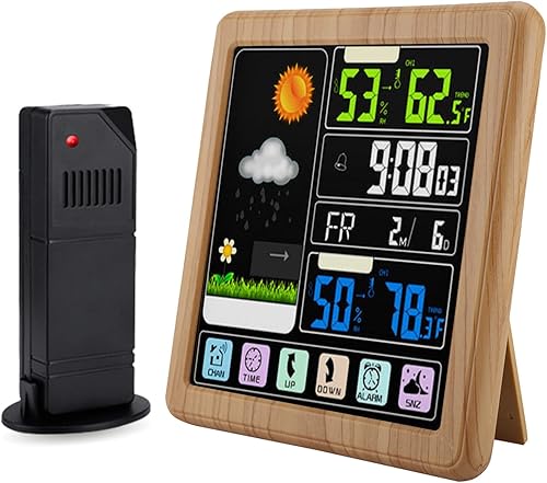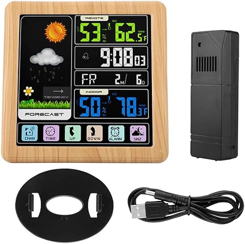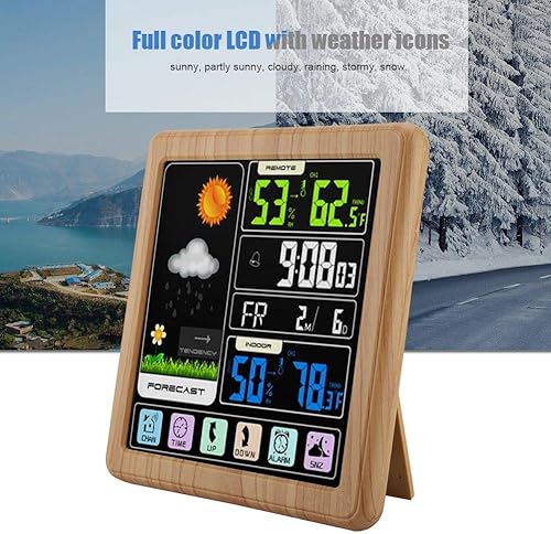 Hakeeta Station météo Couleur avec écran Tactile Complet, Horloge météo Multifonction sans Fil, Verrouillage de l'écran Enfant et Interface USB et écran LCD Couleur(Bois)