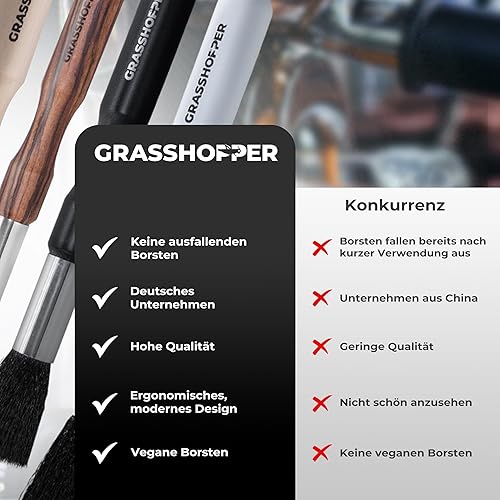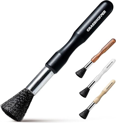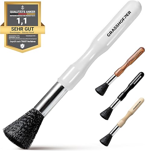 Grasshopper Pinceau Barista - Pinceau de nettoyage végétalien (design moderne en bois) pour machine à café, machine à expresso, moulin à café - Pinceau de cuisine Barista
