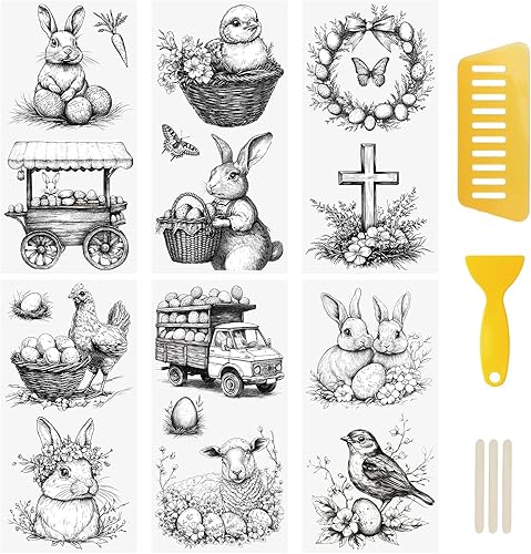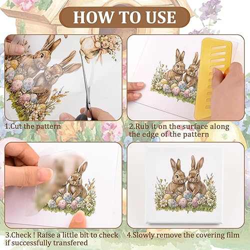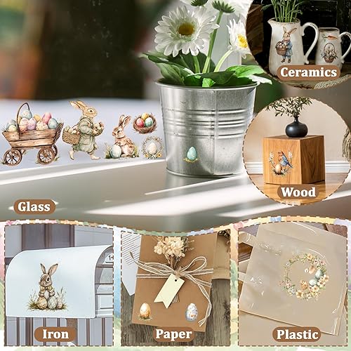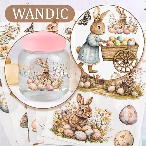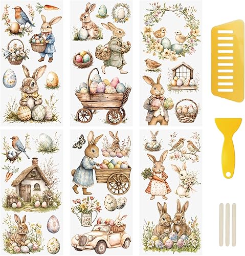 WANDIC Lot de 6 autocollants de transfert vintage sur le thème de Pâques sur le thème des œufs de lapin pour meubles, scrapbooking, fenêtre, 15 x 30 cm