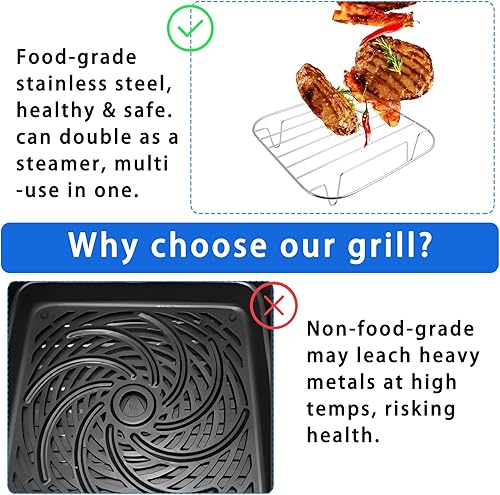 Jecdfs grille pour air fryer, accessoires air fryer, Compatible avec Cosori Dual Blaze et Turboblaze, Acier inoxydable S304, Diagonale minimale requise 27 cm, Polyvalent, 20.5x20.5x5.3 cm