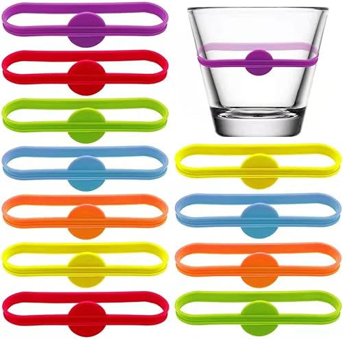 12 pcs Marque-verre Coloré,Marqueur De Verre Silicone,Marqueur Verre,marqueur de verre à vin en silicone,pour verre à vin marque-verres pour fêtes bar party dîner
