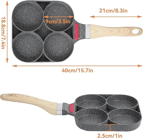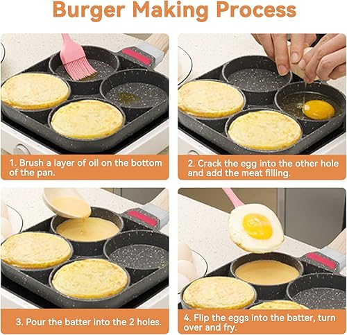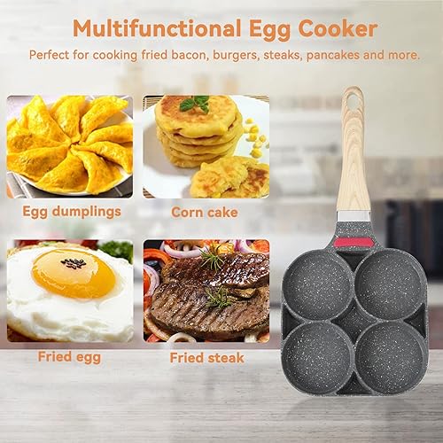 Poêle à 4 Emplacements, Poêle à Pancakes Poêle oeuf à 4 trous Poêle à Crêpes Poêle à Omelette Antiadhésive Petite Poêle à Frire pour Oeuf, Hamburger