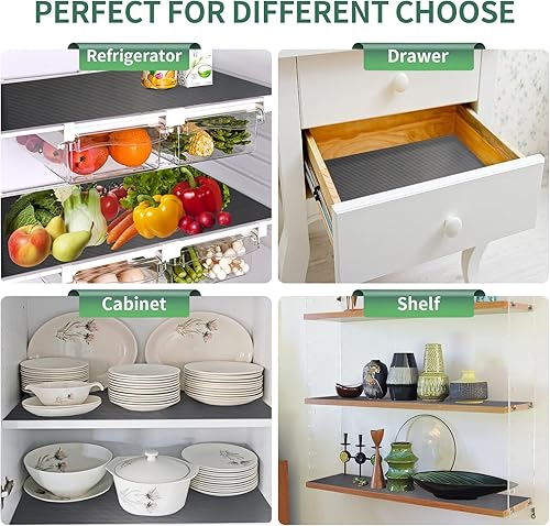 Origuuds Tapis Fond de Tiroir Non-Adhésif, Tapis Frigo en EVA Antiderapant, Plastique Tapis Refrigerateur Placard Etagere Protection, pour Meuble, sous Evier Cuisine (Gris/40cmx605cm)