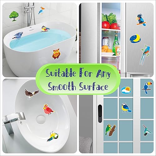 Hebayy 30 Autocollants antidérapants Baignoire avec Designs d'oiseau, imperméable et antidérapant pour Douche et Baignoire avec grattoir Premium