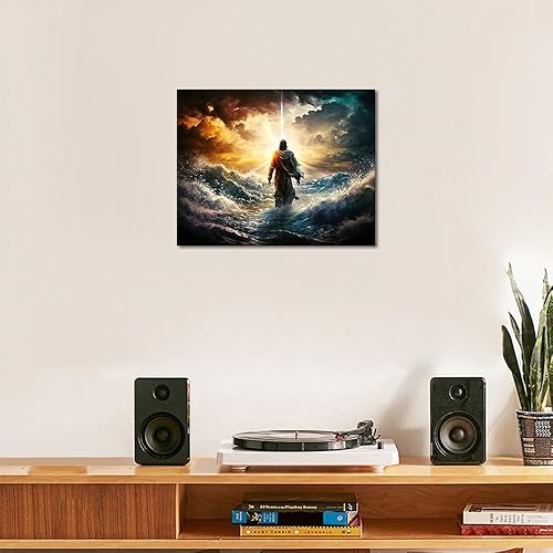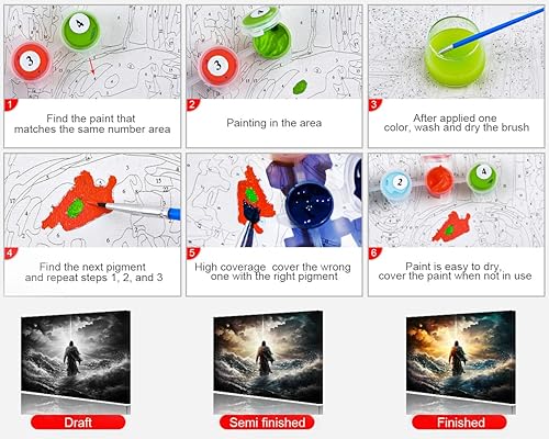 TISHIRON Kit de peinture par numéros Jésus - Figurine de Jésus sur l'eau sur un beau coucher de soleil - Peinture par numéros pour adultes avec pinceaux et pigments, 40 x 50 cm, sans cadre