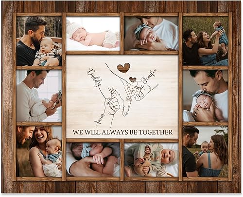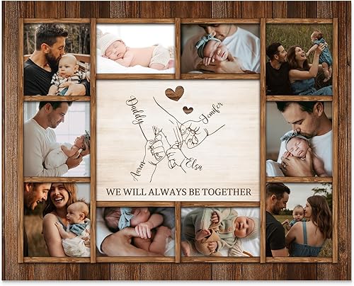 Dailygems Cadeau Fete Des Peres Cadre Photos en Bois Personnalisé pour Papa avec 2-6 Noms et 10 photos Cadeau Photo pour Papa Noël Anniversaire (6 noms)