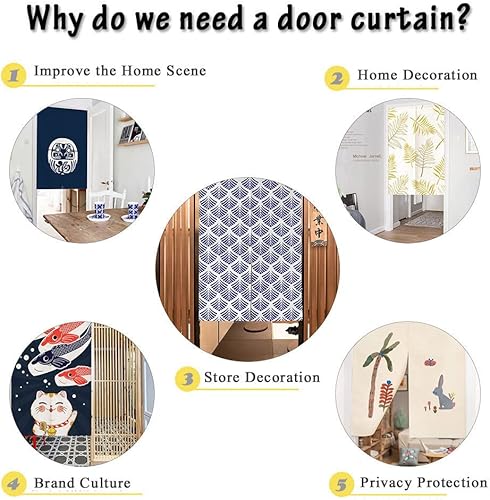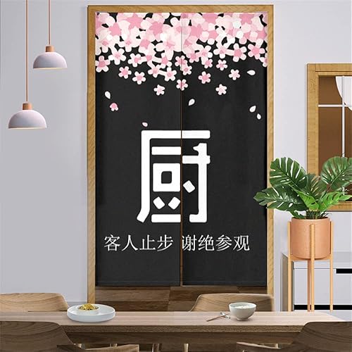 Odot 2022 Noren Rideau de Porte Japonais Long Lin, Rideau Demi-Porte Imprimé de Style Japonais, Rideau de Séparation de Cuisine de Restaurant, Tapisserie Décoration (Fleurs de Cerisier,85x150cm)