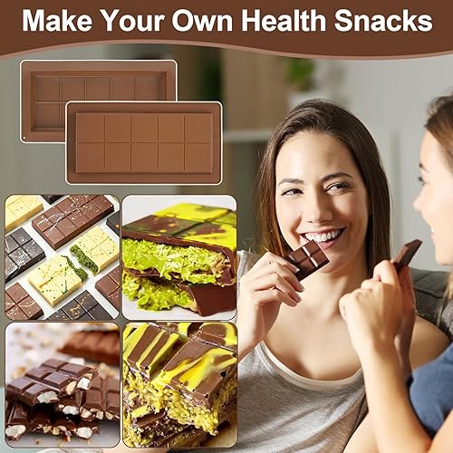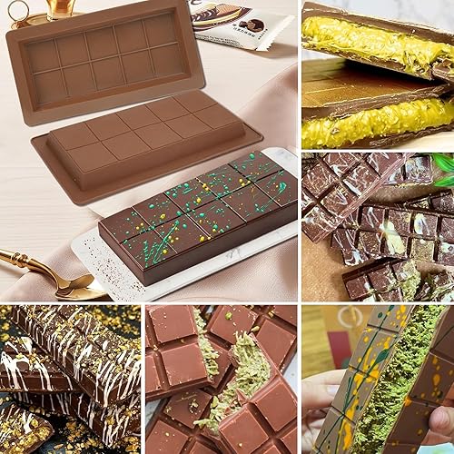 Moule À Chocolat En Silicone, Dubai Lot De 2 Moule À Tablette De Chocolat Profond,Moule à chocolat Antiadhésif Pour Morceaux De Chocolats Protéiné Barre (square)