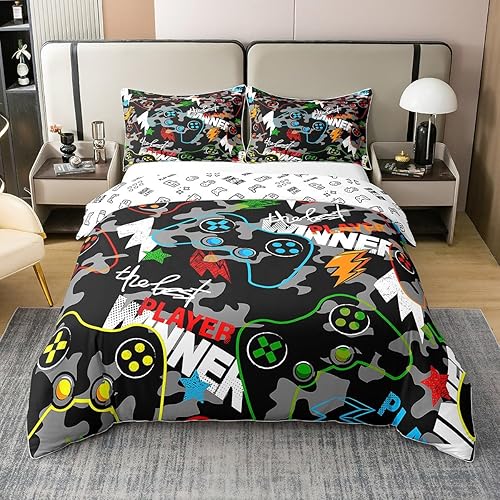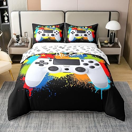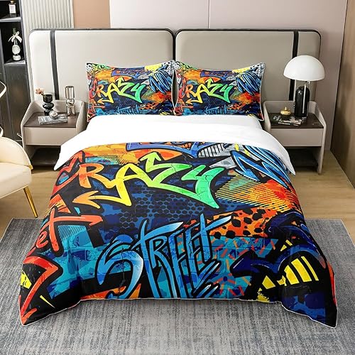 Homemissing Hippie Graffiti Style Housse de Couette 220x240cm 100% Coton Adolescent Hip Hop décoration Enfants Parure de Lit Garçon Fille Graffiti Motif Literie Set Street Culture Série 3 pièces
