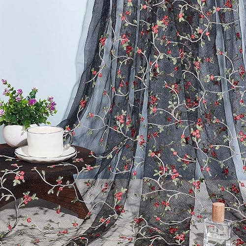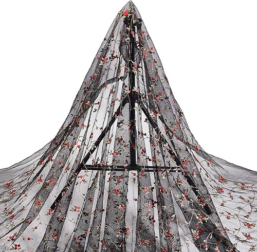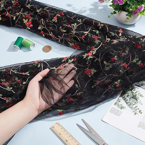NBEADS 3 Verges Tissu Fleuri Brodé, 1.3m Tissu de Dentelle Noir Tissu Tulle Brodé en Polyester Tulle Organza pour Bricolage Vêtements Faits Main Robe de Soirée Fournitures D'Artisanat